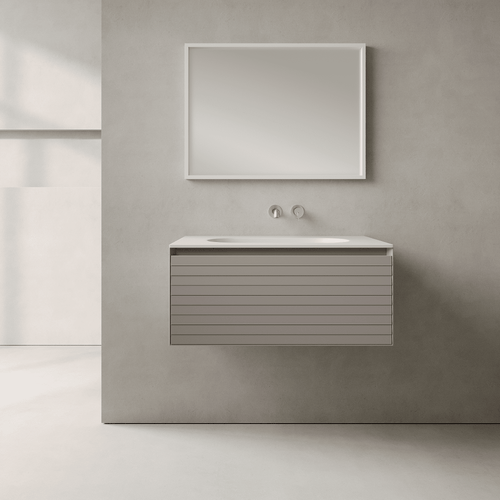 Its floating design enhances a sense of space, while the single soft-close drawer provides discreet yet generous storage. Each piece is completed with a solid Hansel Stone recessed sink, engineered for exceptional durability and a flawless surface that’s as practical as it is beautiful.