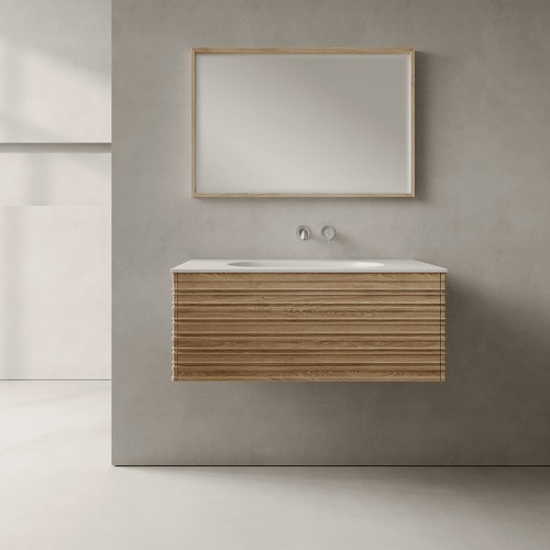 The Rivara vanity is a study in refined texture and modern craftsmanship. Its signature fluted front creates a captivating interplay of light and shadow, bringing tactile depth and character to contemporary bathroom spaces. Available in Ash, American walnut, or a rich palette of lacquered finishes, Rivara effortlessly bridges natural warmth and architectural precision.