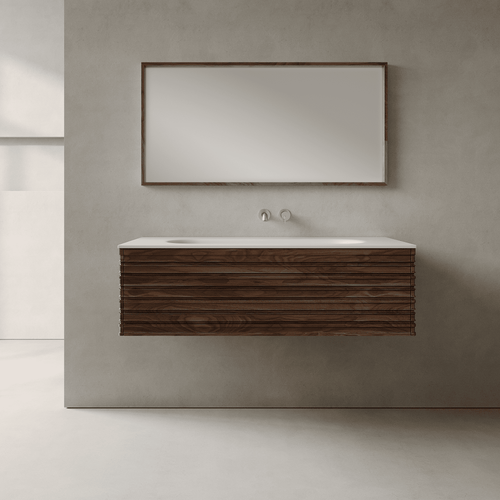 The Rivara vanity is a study in refined texture and modern craftsmanship. Its signature fluted front creates a captivating interplay of light and shadow, bringing tactile depth and character to contemporary bathroom spaces. Available in Ash, American walnut, or a rich palette of lacquered finishes, Rivara effortlessly bridges natural warmth and architectural precision.