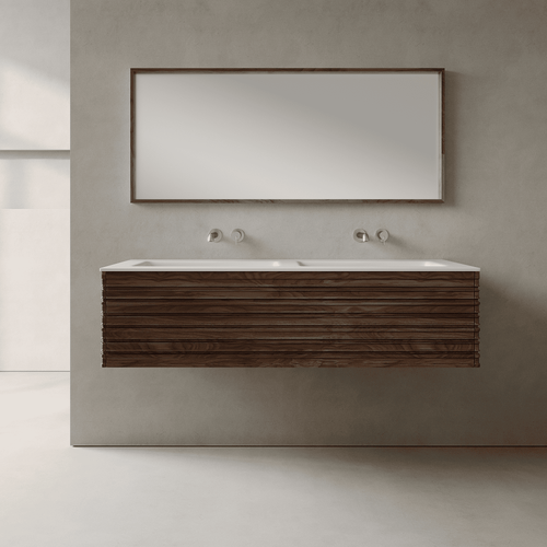 The Rivara vanity is a study in refined texture and modern craftsmanship. Its signature fluted front creates a captivating interplay of light and shadow, bringing tactile depth and character to contemporary bathroom spaces. Available in Ash, American walnut, or a rich palette of lacquered finishes, Rivara effortlessly bridges natural warmth and architectural precision.