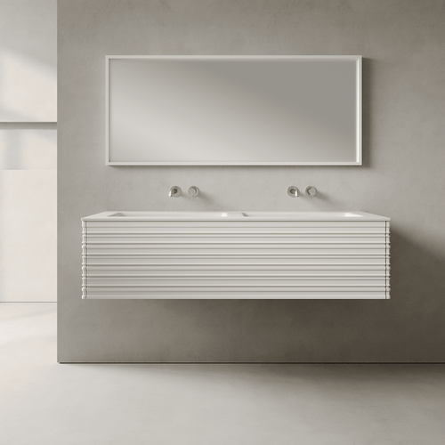 The Rivara vanity is a study in refined texture and modern craftsmanship. Its signature fluted front creates a captivating interplay of light and shadow, bringing tactile depth and character to contemporary bathroom spaces. Available in Ash, American walnut, or a rich palette of lacquered finishes, Rivara effortlessly bridges natural warmth and architectural precision.