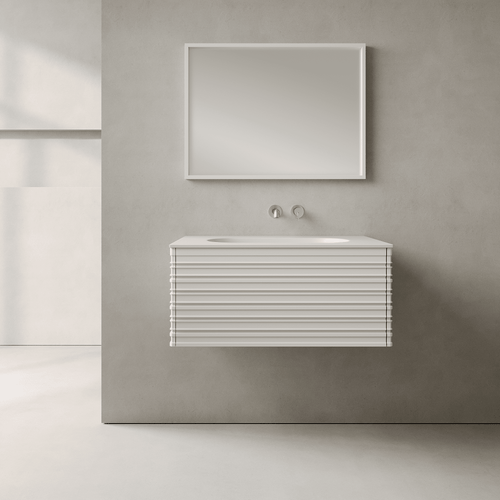 The Rivara vanity is a study in refined texture and modern craftsmanship. Its signature fluted front creates a captivating interplay of light and shadow, bringing tactile depth and character to contemporary bathroom spaces. Available in Ash, American walnut, or a rich palette of lacquered finishes, Rivara effortlessly bridges natural warmth and architectural precision.