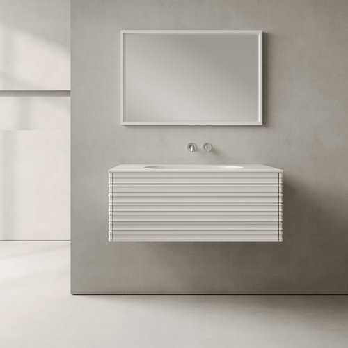 The Rivara vanity is a study in refined texture and modern craftsmanship. Its signature fluted front creates a captivating interplay of light and shadow, bringing tactile depth and character to contemporary bathroom spaces. Available in Ash, American walnut, or a rich palette of lacquered finishes, Rivara effortlessly bridges natural warmth and architectural precision.