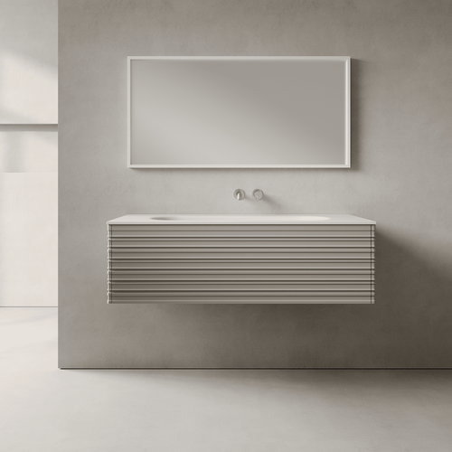 The Rivara vanity is a study in refined texture and modern craftsmanship. Its signature fluted front creates a captivating interplay of light and shadow, bringing tactile depth and character to contemporary bathroom spaces. Available in Ash, American walnut, or a rich palette of lacquered finishes, Rivara effortlessly bridges natural warmth and architectural precision.