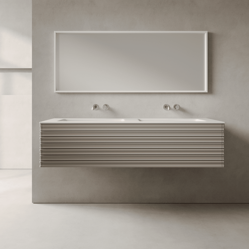 The Rivara vanity is a study in refined texture and modern craftsmanship. Its signature fluted front creates a captivating interplay of light and shadow, bringing tactile depth and character to contemporary bathroom spaces. Available in Ash, American walnut, or a rich palette of lacquered finishes, Rivara effortlessly bridges natural warmth and architectural precision.
