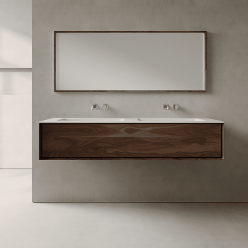 The Valmere vanity embodies Hansel’s philosophy of refined simplicity and craftsmanship. With its clean geometry and uninterrupted grain, it celebrates the authentic beauty of American oak, American walnut, and a curated selection of stained solid wood finishes. Each piece is meticulously constructed, showcasing the depth, tone, and natural variation of real timber.
